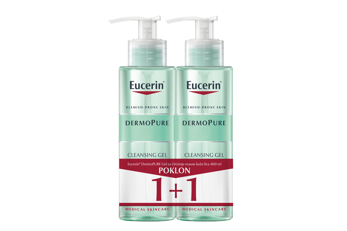 Kada je čišćenje masne i problematične kože u pitanju, dermatolozi savetuju da je dovoljno lice prati dva puta dnevno, uz upotrebu preparata koji je efikasan, ali nije agresivan prema koži. Upravo takav preparat je Eucerin® DermoPURE Gel za čišćenje kože. Namenjen svakodnevnoj primeni, u praktičnom pakovanju od 400ml sa pumpicom, ovaj preparat ne sadrži sapune i parfeme, a pogodan je za upotrebu i za osobe koje imaju osetljivu kožu.
