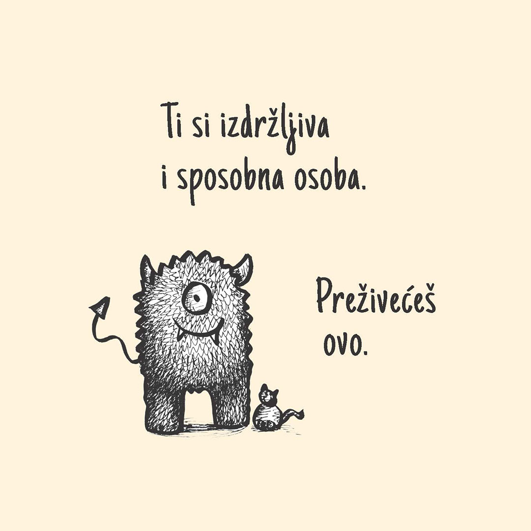 Nežni vodič kroz anksioznost i stres Mala anksiozna čudovišta nedavno je objavljen u ediciji Mala psihologija izdavačke kuće Кreativni centar. Autorka i ilustratorka Veriti Кrosvel ispunila je ovu knjigu ljupkim crtežima, kao i rečima podrške i utehe upućenim svima onima koji se bore sa anksioznošću.