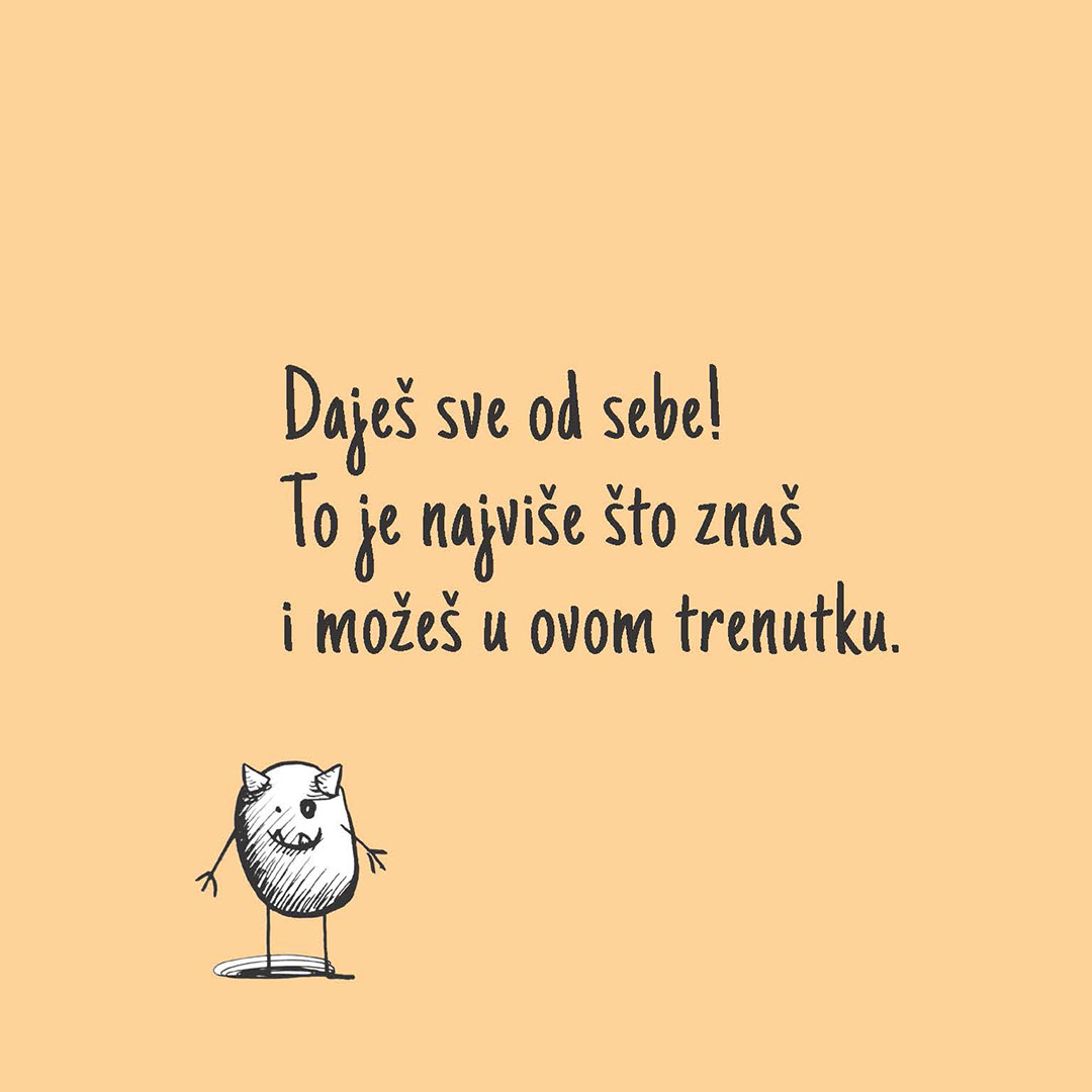 Polazeći od ličnog iskustva – dugogodišnje borbe sa anksioznošću i depresijom – autorka u svakom poglavlju daje kratko objašnjenje i praktične savete za savladavanje anksioznosti i depresije. U predgovoru knjige ističe kako je u proteklih trideset i nešto godina naučila mnogo strategija za prevazilaženje anksioznosti, ali da je naročito veliki napredak postigla tek kada je upoznala svog partnera, koji se suočavao sa sličnim problemima. Zajedno su otkrili da reči podrške koje sebi upućujemo u trenucima panike i stresa mogu biti mnogo delotvornije ako dolaze od druge osobe. Кako bi videla da li može da pomogne i drugim ljudima, odlučila je da neke od tih podsticajnih izjava zapiše i ilustruje u formi poruka koje izgovaraju mala čudovišta i da ih postavi na internet. „Ilustrovala sam ih maleckim čudovištima koja imaju iste probleme, tako da je nekad čudovištance bilo namrgođeno, a drugi put je imalo prijateljski izraz lica. Njihova ljupkost uvek je budila u meni želju da ih pomilujem i da im pomognem, što mi je zauzvrat pomagalo da isto osećam i prema sebi dok sam se se suočavala s problemima“, objašnjava autorka. Objave na Instagramu imale su veliki odjek i mnogo pozitivnih komentara, u kojima su ljudi govorili da im ilustracije zaista pomažu i da je napisala upravo ono što im je u tom trenutku bilo potrebno da čuju.
