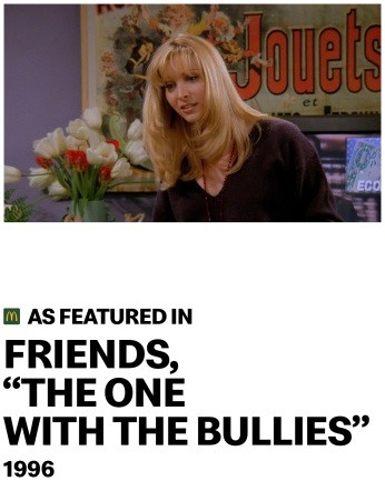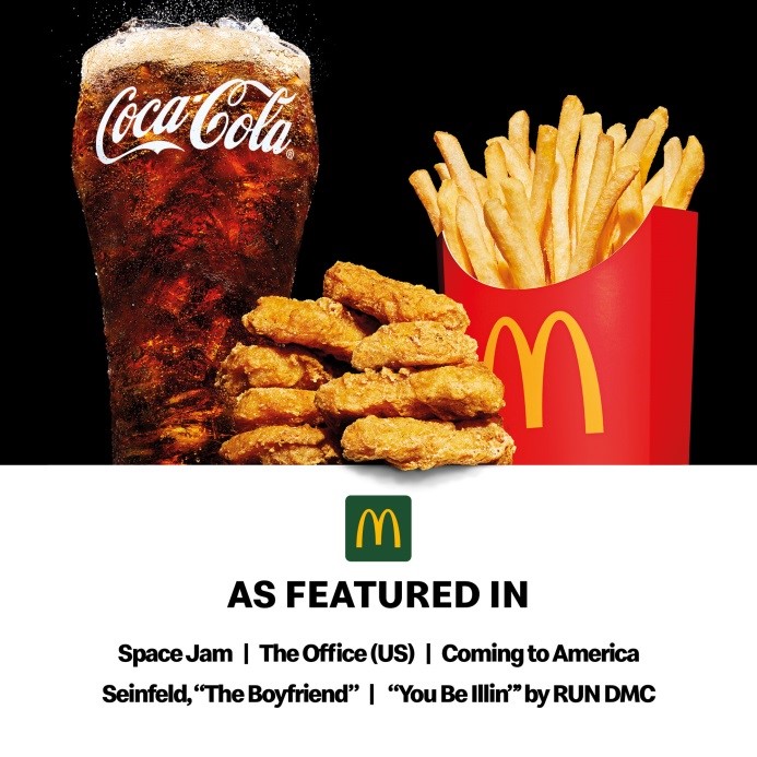 „Nisu samo naši stvarni fanovi ti koji imaju omiljenu porudžbinu. Nekoliko decenija unazad, naši popularni filmski i TV likovi takođe imaju svoje omiljene porudžbine,“ objašnjava šef globalnog marketinga u McDonald’s-u i direktor sektora za nove poslovne poduhvate u McDonald’s-u Morgan Flatley. „Obrok „As Featured In Meal“ je naša ponuda koja uključuje popularne proizvode, a kojom slavimo najupečatljivija pominjanja MCDonald’s-a u svetu zabave.“